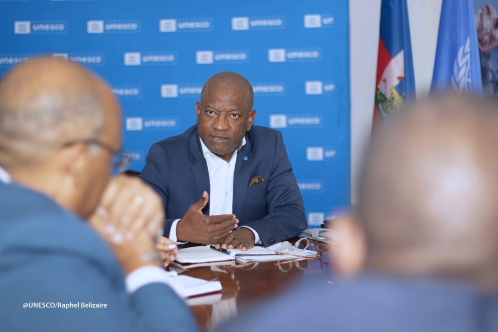 De son côté, le Représentant de l’UNESCO a, selon le communiqué, fait un survol des actions en cours de l’institution en Haïti, notamment dans les domaines de « l’adaptation aux changements climatiques, de la gestion des risques de catastrophe en milieu scolaire et du renforcement des capacités dans plusieurs départements du pays ».
