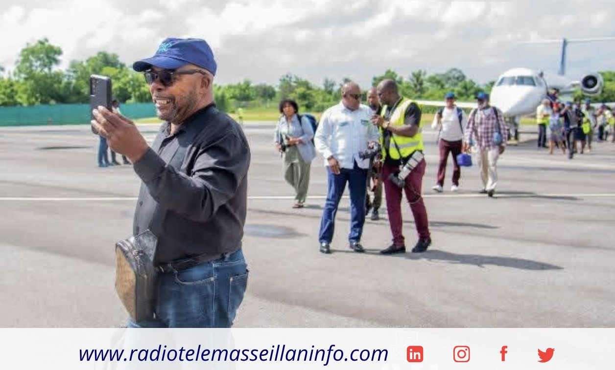 Des cris de joie, des drapeaux agités, des visages émus : habitants, autorités locales, journalistes et membres de la diaspora s’étaient donné rendez-vous pour vivre cet instant qu’ils attendaient depuis longtemps. Trente passagers ont foulé le sol cayen, salués comme les pionniers d’un nouveau chapitre de l’histoire aérienne d’Haïti, tandis qu’un groupe de musiciens faisait résonner les tambours et que des femmes issues de Zèklè, vêtues de karabela, accueillaient les voyageurs dans une ambiance de fête.