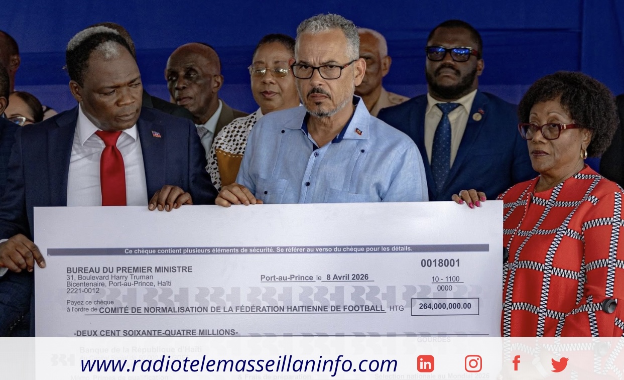 À quelques mois de la Coupe du Monde 2026, la sélection haïtienne continue de mobiliser l’attention nationale. Ce mercredi, à la Villa d’Accueil, le gouvernement haïtien a officiellement remis deux chèques de 264 millions de gourdes chacun au Comité de Normalisation de la Fédération Haïtienne de Football, destinés à la préparation des Grenadiers pour la compétition mondiale.